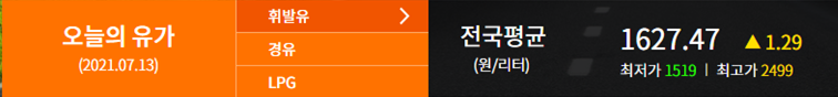 연료가격 기준은 2021.07.13 (출처: 한국석유공사 오피넷)
