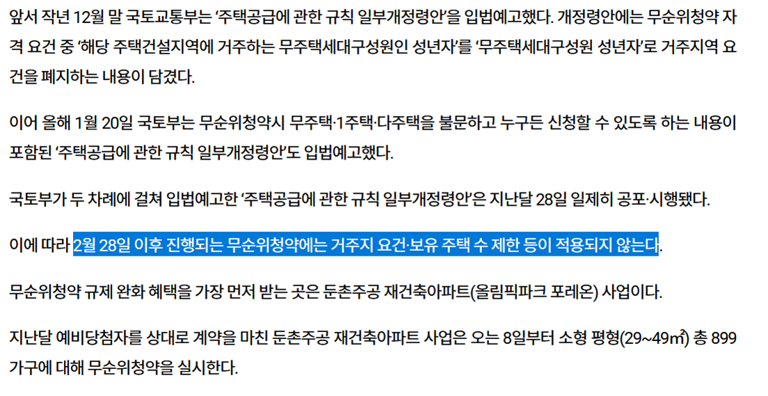무순위청약(줍줍) 거주지 요건, 보유주택 수 제한 폐지 - 어디에 살건 누구나 청약 가능 (2023년 2월 28일 기준)
