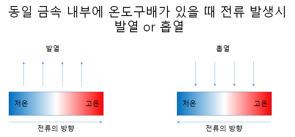 1) 정의: 동일 금속에 온도 차이가 있을 때 전류의 방향에 따라 금속의 발열 혹은 흡열이 일어나는 현상