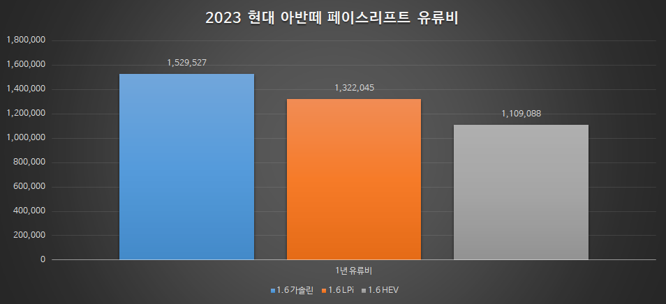 2023 현대 아반떼 페이스리프트 유류비 계산 - 가솔린, LPG, 하이브리드