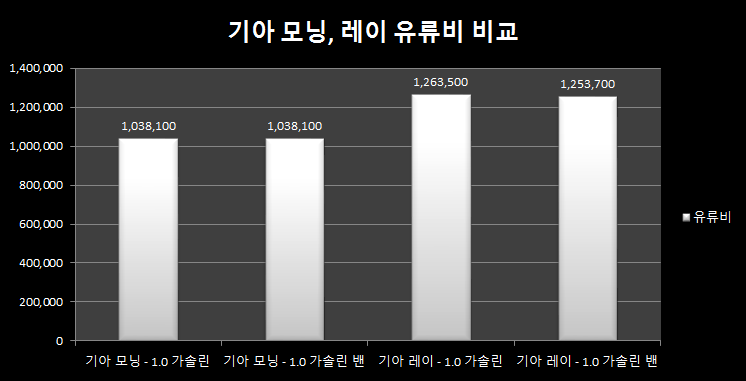 대한민국 대표 경차 모닝과 레이의 유류비를 비교해보자.