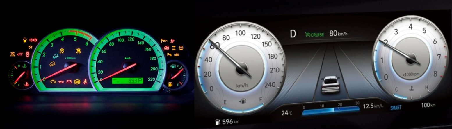 | 방향전환시에는 해당방향의 화살표가 점등되고, 비상경고등을 작동시키면 좌우화살표가 모두 점멸됨 | 크루즈 컨트롤 기능을 사용하면 점등됨 | 주행시 자동으로 차선을 벗어나지 못하게 하는 장치로서 차선을 이탈시 핸들의 진동이나 경고음을 운전자에게 알림 |