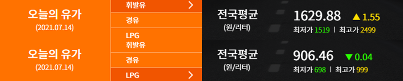 2021년 7월 14일 유가를 보면 그 차이를 확실히 알 수 있다. 그래서 유류비를 계산해보면 LPG 엔진 차량의 유류비가 압도적이다.
