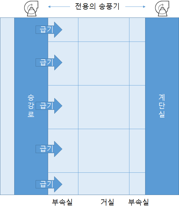 2) 하나의 수직풍도마다 전용의 송풍기 설치
