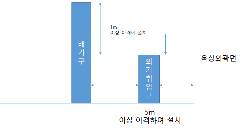 1) 연기 또는 공해물질 등으로 오염된 공기를 취입하지 않는 위치