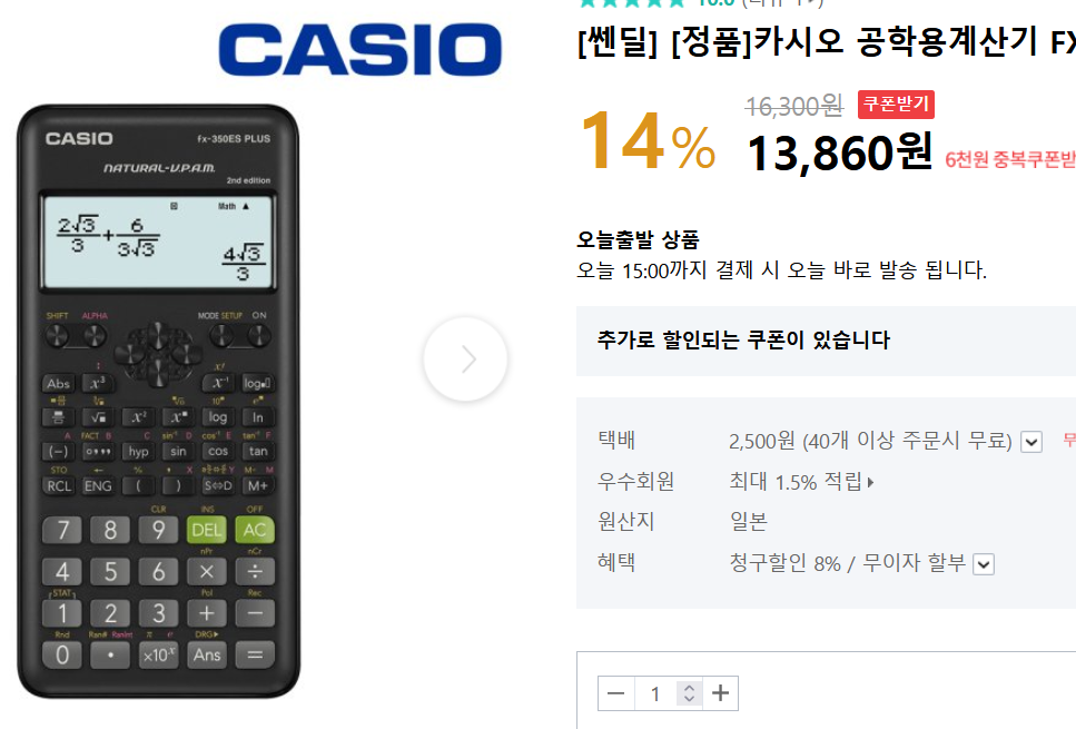 가격은 1만원 초반대로 (배송비 제외) 구매할 수 있다. 공학용 계산기치고는 저렴한 가격이다. 그러나 중요한 건 가격이 아니라 가격대비 디스플레이, 성능을 보아야 한다.