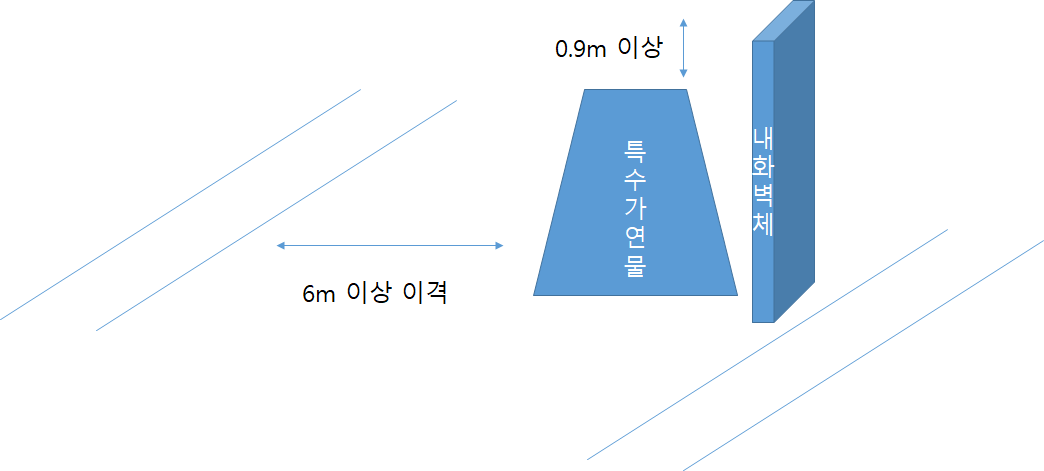 - 특수가연물의 쌓는 높이보다 0.9m 이상의 내화벽체 설치시 예외