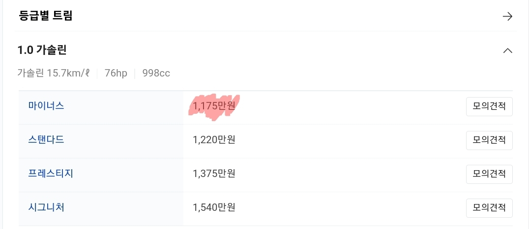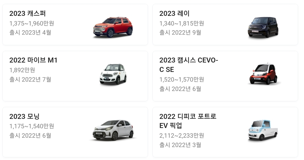 현재 국내에서 판매되는 경차 중 가장 저렴한 기아 모닝을 기준으로 계산해보았다. 2023 기아 모닝은 가장 기본 트림이 1,175만원이다. 여기에 일반 승용차, SUV라면 개별소비세, 취득세가 붙지만 경차는 현재 면제가 된다.