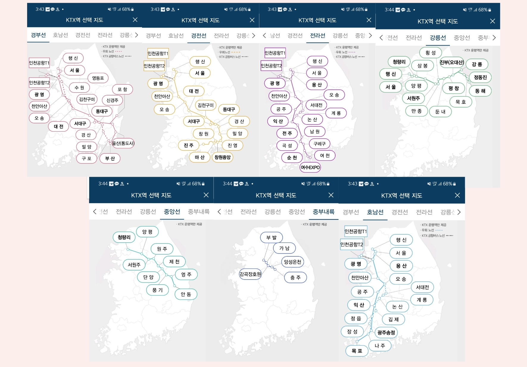 간단하게 KTX 7개 노선에 대해 알아보았다. KTX를 자주 이용하지는 않지만 이용할때마다 신이 난다. 기차를 탄다는 건 뭔가 설레는 일이다. 내가 어떤 노선을 타고 목적지까지 가는지 알고 가면 더 재밌지 않을까?