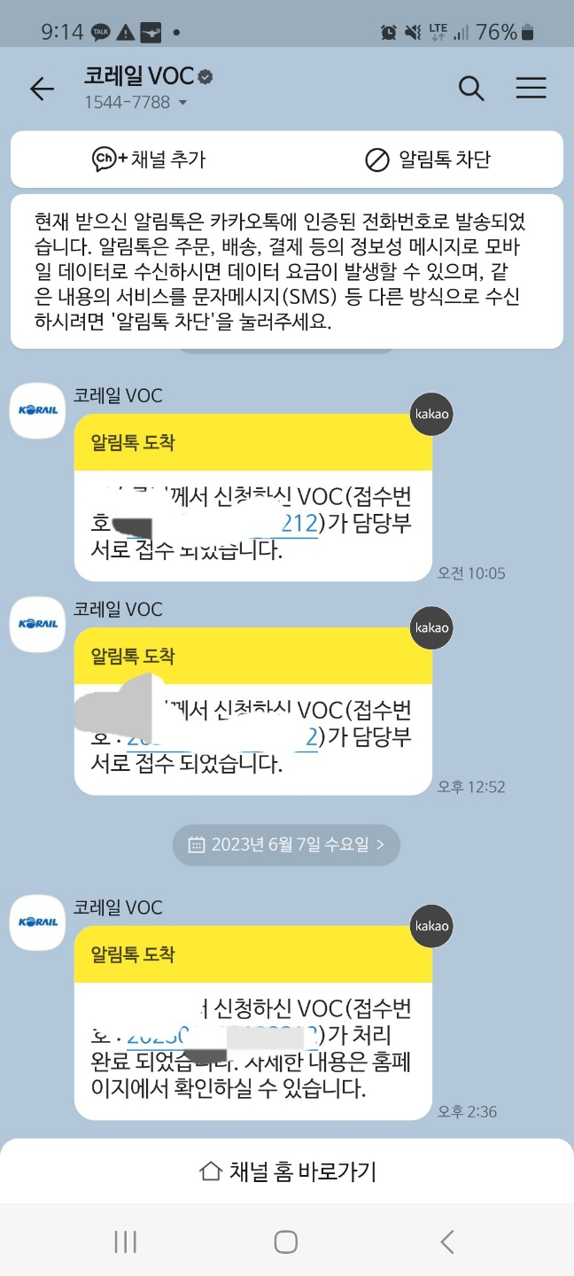 덕소역 코레일 민원 결과 승강장내 승하차처리 단말기 설치 - 감사합니다