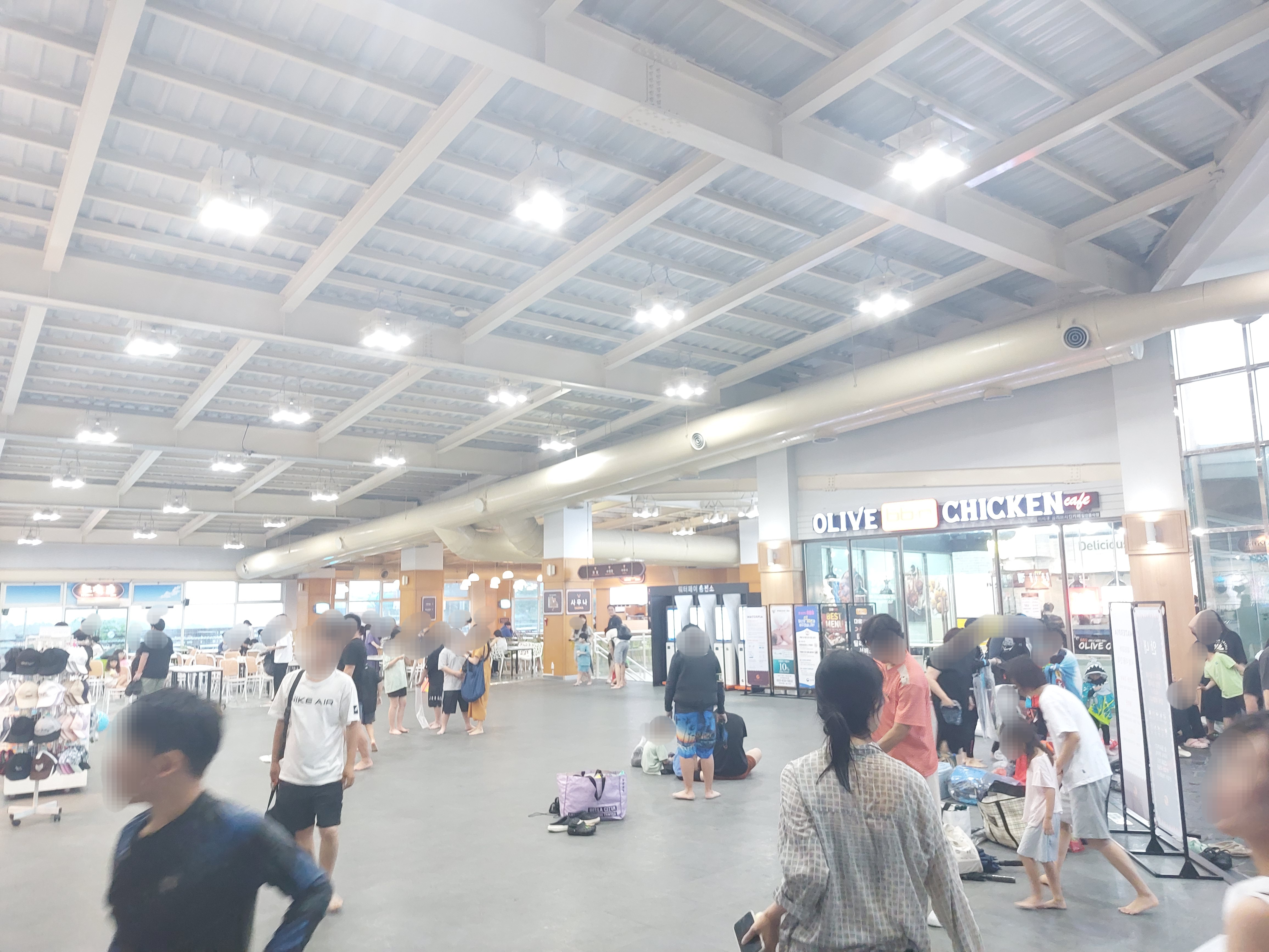 워터파크 이용객들과 동일한 사우나를 사용하며, 내부 시설은 꽤 괜찮습니다. 수건은 기본적으로 있으며 다른 세면 도구는 없습니다. 1층에는 3개의 음식점이 있고 워터파크 답게 워터파크 이용에 필요한 물품을 팔고 있습니다. 가격이 꽤 비싸니 가급적이면 미리 준비해 가시길 바랍니다.