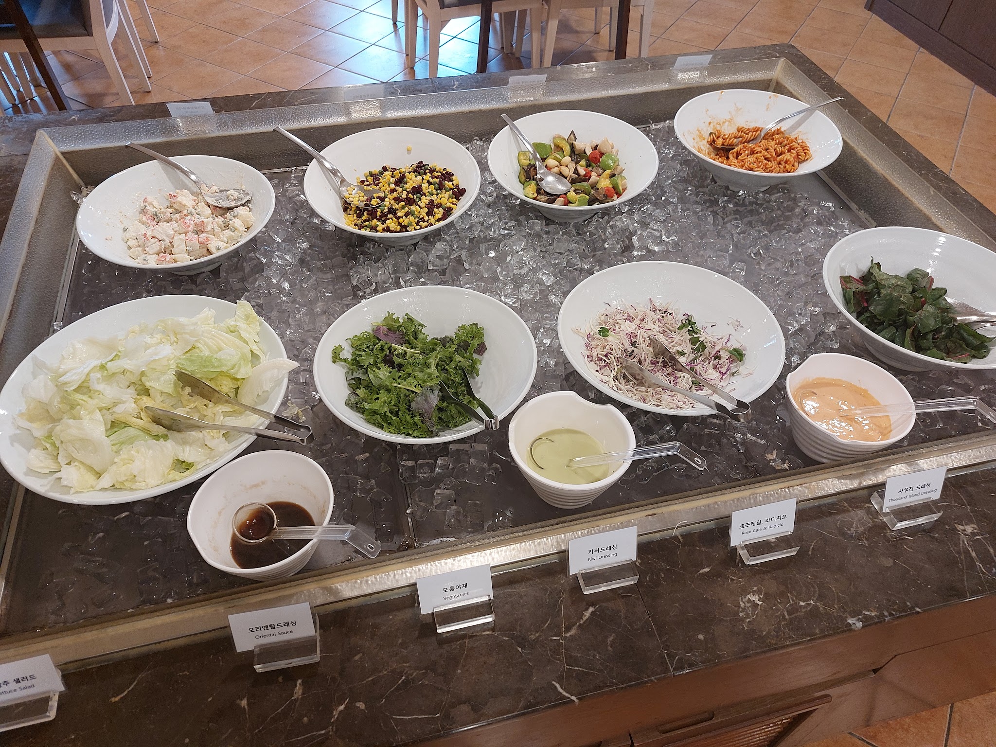 샐러드는 8종류 정도 됩니다. 연어 샐러드가 없는 게 좀 아쉽긴하네요. 개인적으로 푸질리 파스타가 괜찮았습니다.