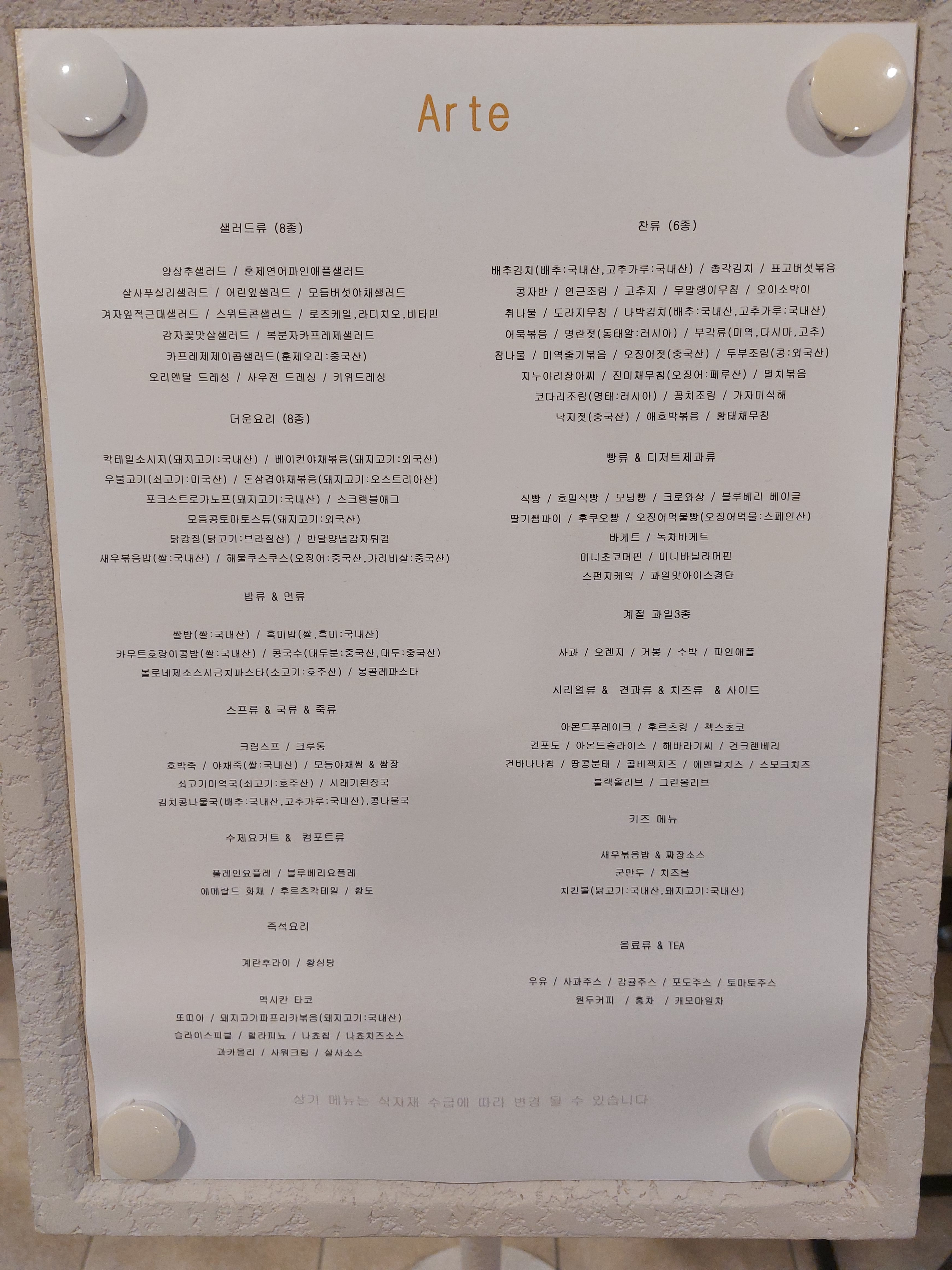| 한화리조트 쏘라노 조식 메뉴 구성 | 한화리조트 별관 조식 메뉴 구성 |