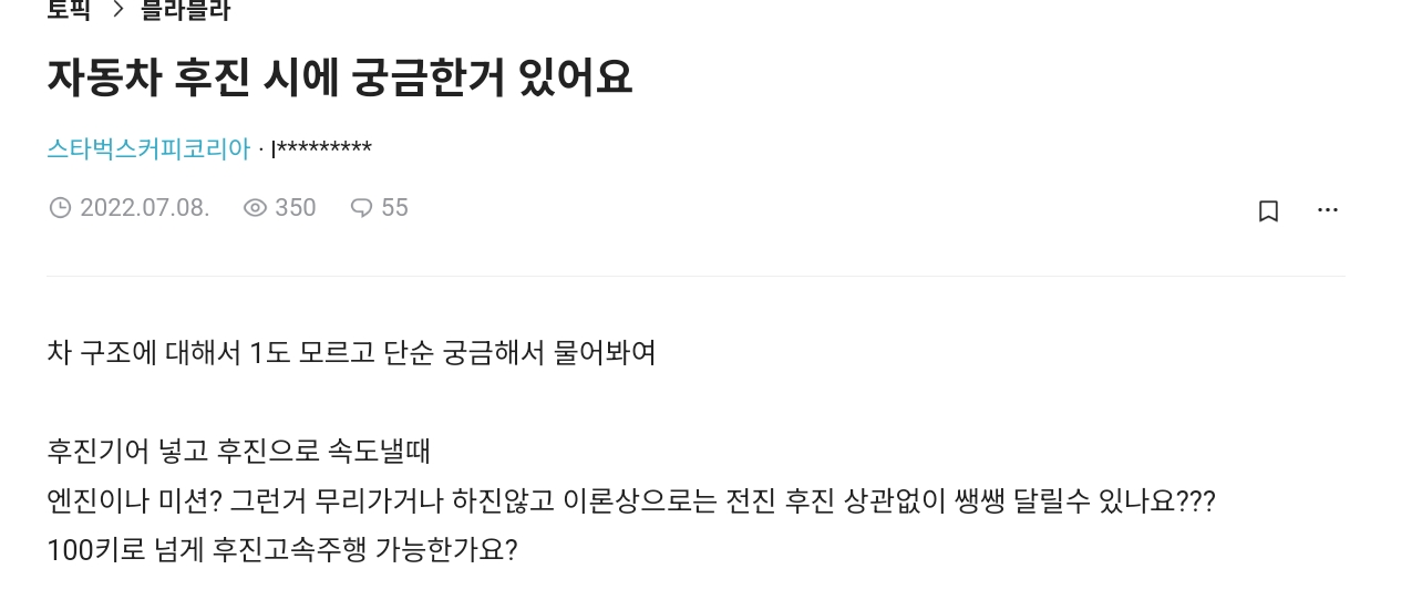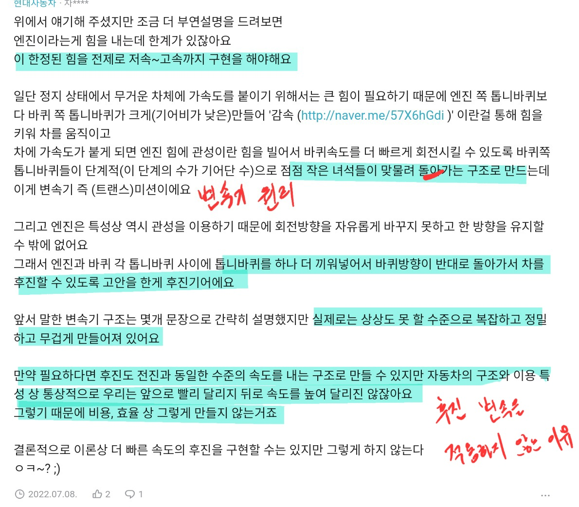 근데 RPM을 극도로 높여 후진을 한 것인지 기어변속을 해서 고속으로 달린 것인지는 알 수가 없다. 필자도 궁금해서 직장인 커뮤니티인 '블라인드'에서 찾아보았다.