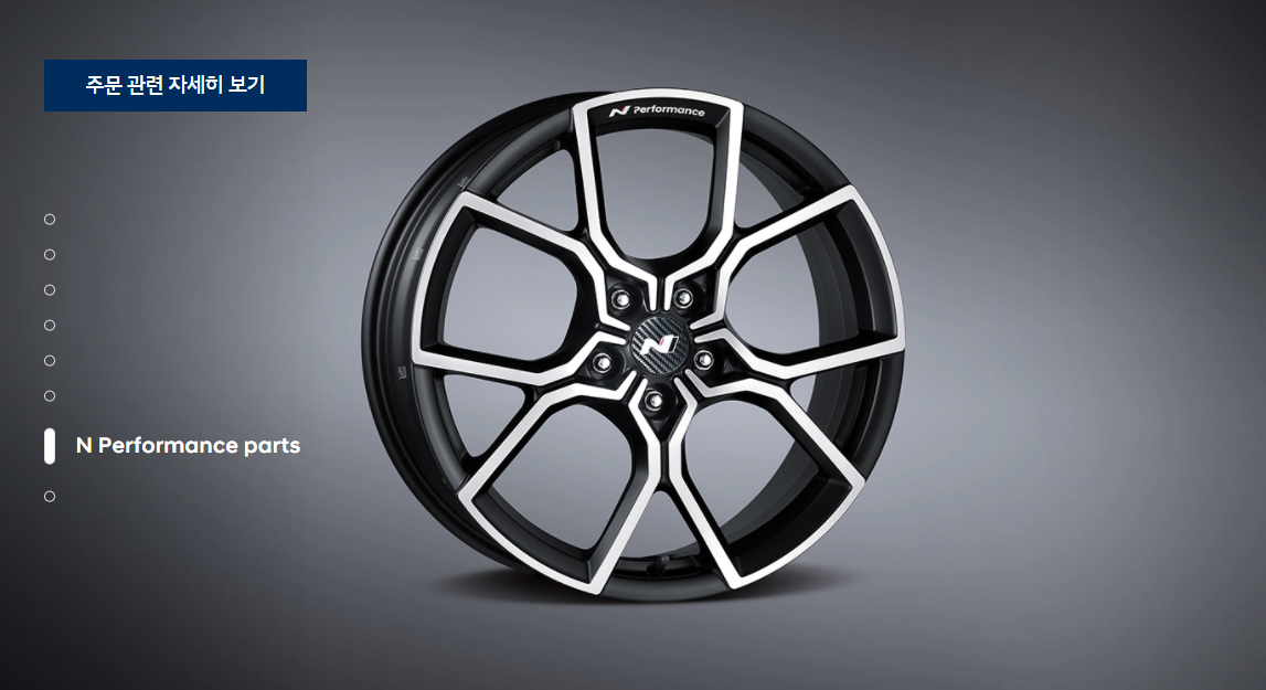 다음은 N 라인 전용 타이어 휠입니다. N 마크와 함께 N Line 전용이 장착되었습니다. 더욱 스포츠카다움을 뽑내고 있는 듯 합니다.