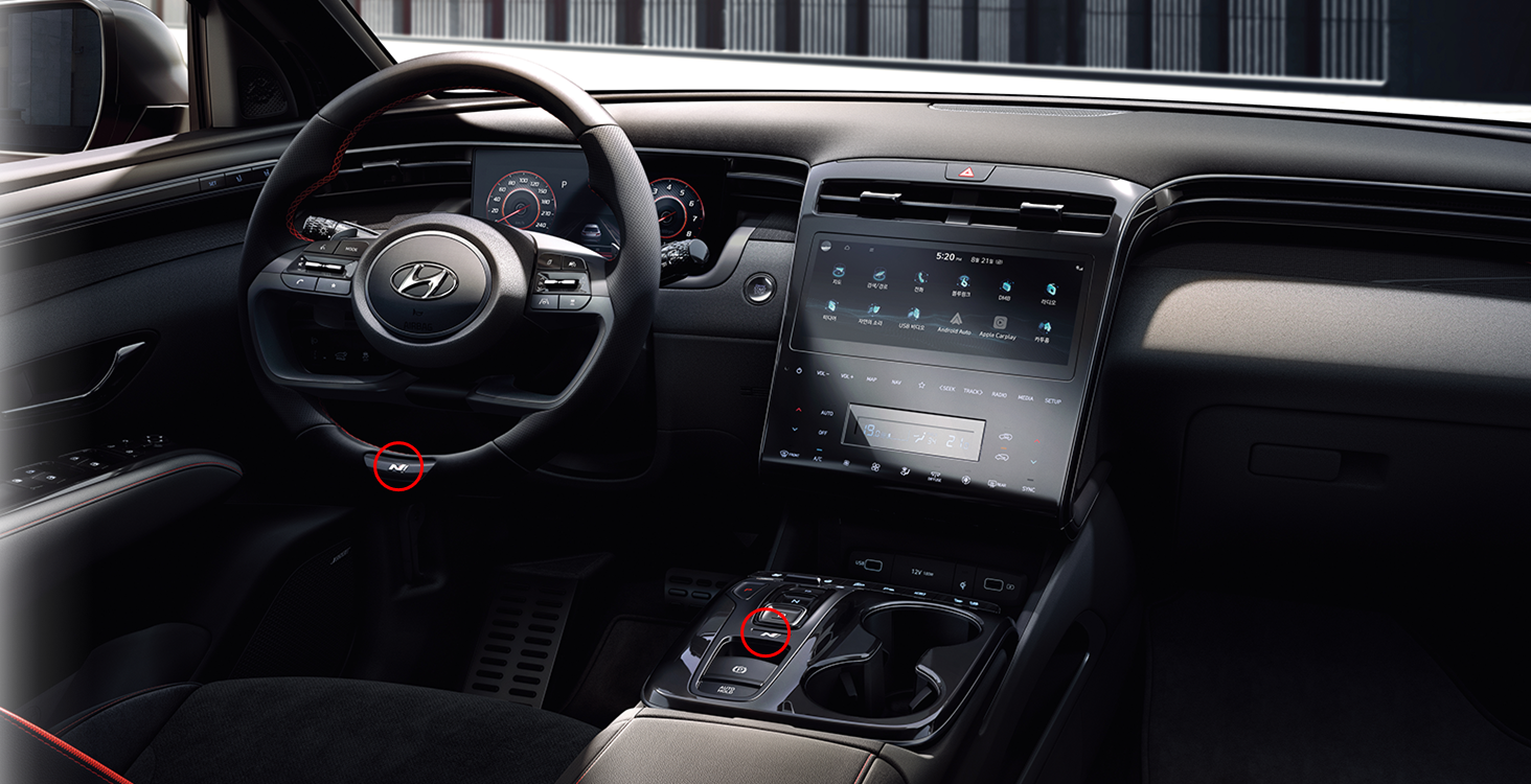 N 마크가 보이시나요? N Line 전용으로 디자인되었고 N 마크를 찾는 재미가 있는 것 같습니다. 내관은 크게 변하지 않았지만 시원시원한 대시보드가 아주 맘에 듭니다.