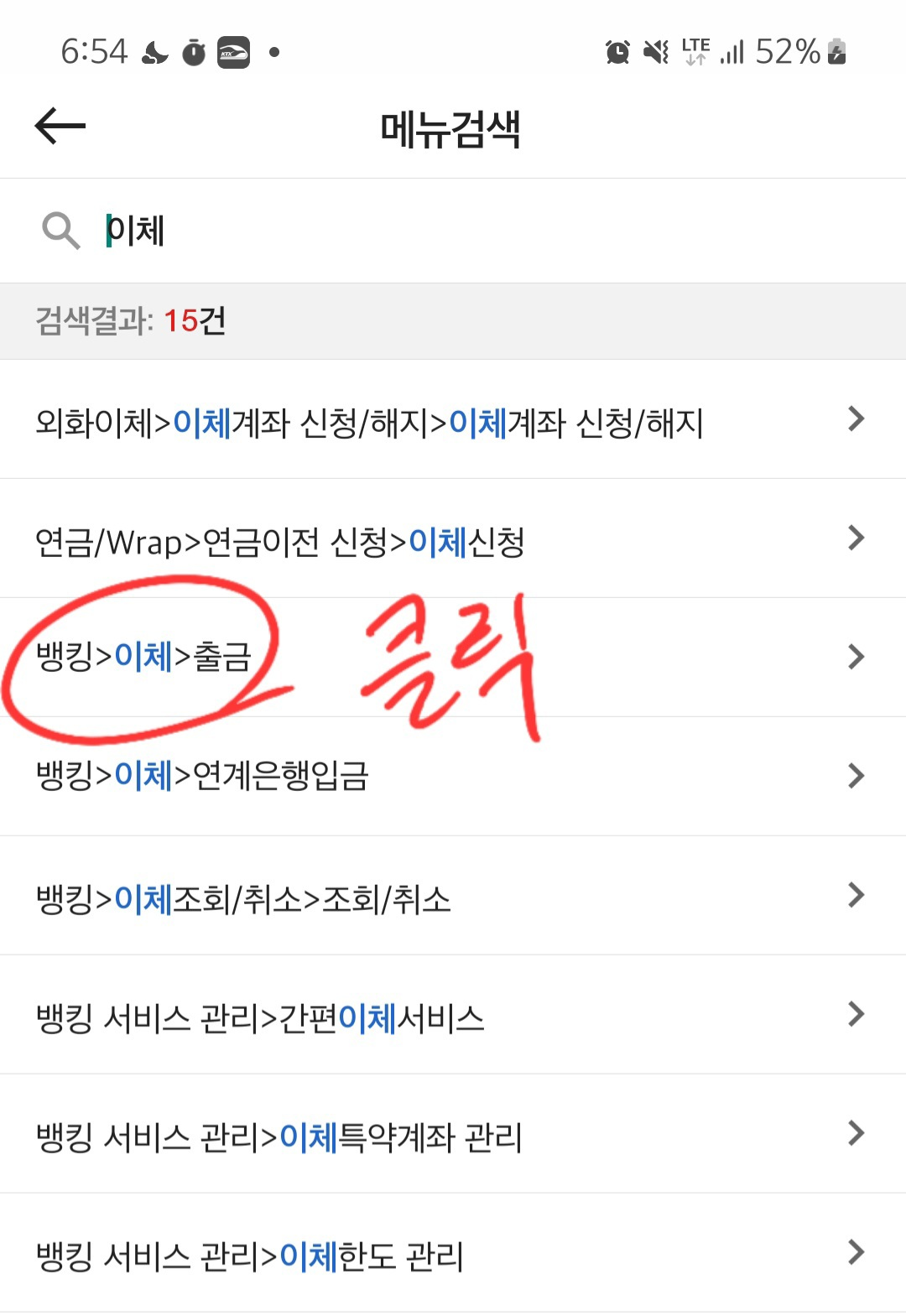 1. 대신증권 앱에서 '이체'를 검색하여 이체 클릭