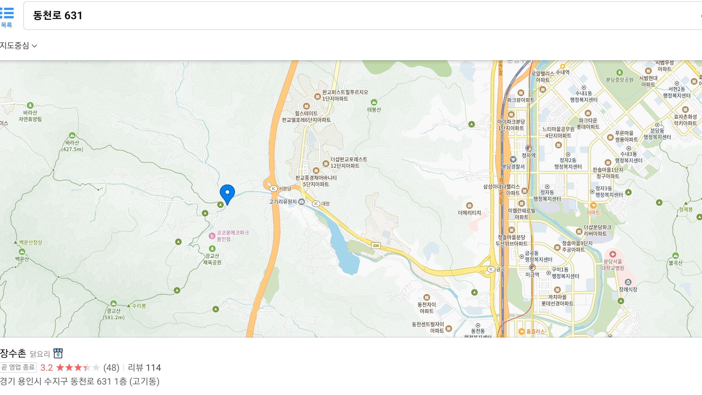 용인 장수촌 위치 - 분당에서 가깝네