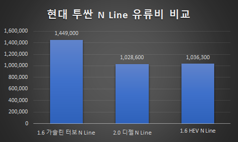 2021년 7월 14일 출시된 투싼 N Line의 유류비를 비교해보자.