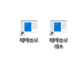 그러고나서 바로가기의 이름을 설정하면 위와 같이 예약종료, 예약종료 취소 바로가기가 생성된다. 이제 예약종료를 하려면 바로가기 버튼만 누르면 알아서 예약종료가 설정되고, 예약종료를 취소할 수 있다. 필자로 PC에서 바로가기를 이렇게 쓰는 걸 처음알았다. (역시 사람은 배워야 손발이 덜힘들다)