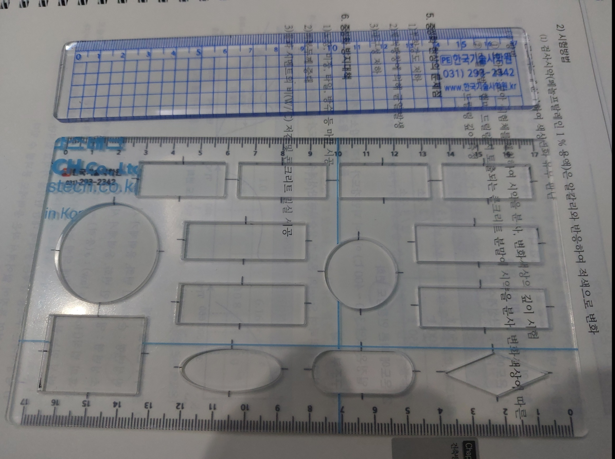 그동안 기술사 공부를 하면서 여러가지 자를 써보았는데, 한국기술사회에서 판매하는 직선자, 도형자가 가장 쓰기 좋았다. 그래서 추천 겸, 어떤 점이 좋았는지 설명하고자 한다.