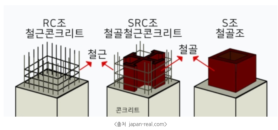 철골조라고도 부른다. (철로 된 뼈(골)로 구성한 구조)