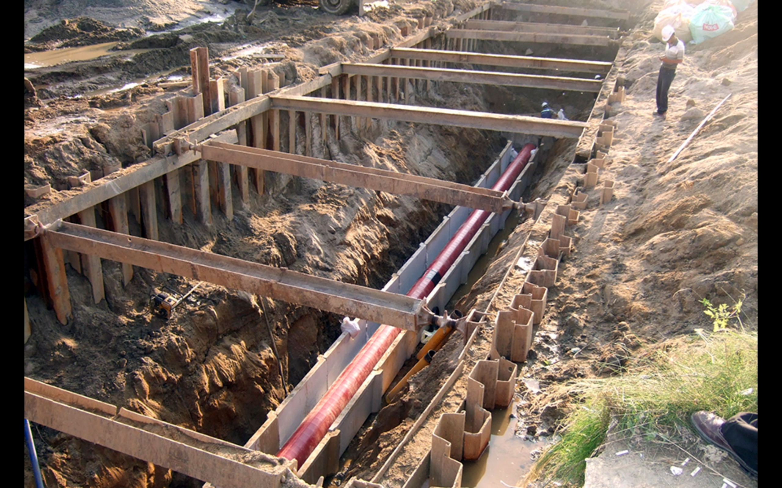 그래서 하천을 횡단하는 배관은 일반적인 기준보다 더 깊게 매설한다. 일반 도로, 시가지 등의 경우에는 경우마다 다르지만 보통 1.2 ~ 1.5m 정도에 매설한다.