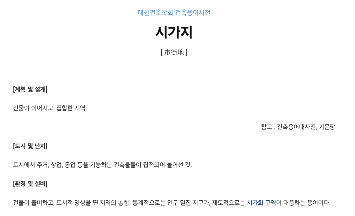 네이버 사전으로 찾아보았지만, 추상적으로 시가지에 대한 정의만 나와있다. 정확하고 구체적인 기준이 필요하다.
