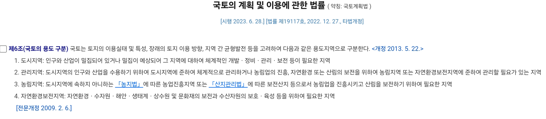 그에 대한 답은 국토의 계획 및 이용에 관한 법률 제6조와 제36조에 나와있다.