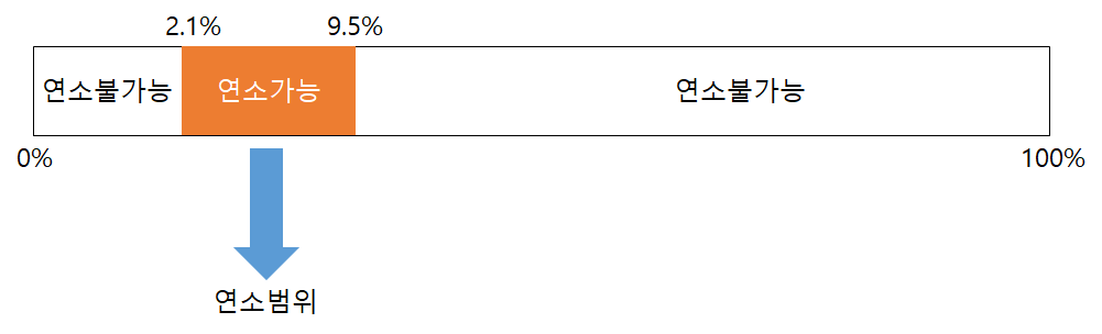 연소범위는 말그대로 가연성가스가 특정 농도 범위에 있어야 연소가 가능하다는 걸 뜻한다.