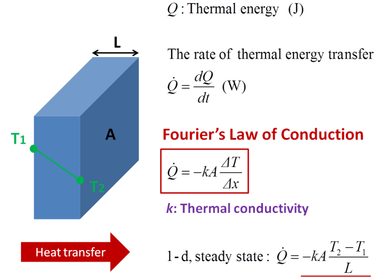 열전도도는 Fourier 법칙에 쓰이는 계수로, 이 법칙을 알고 있으면 단위를 외우기 쉽다.
