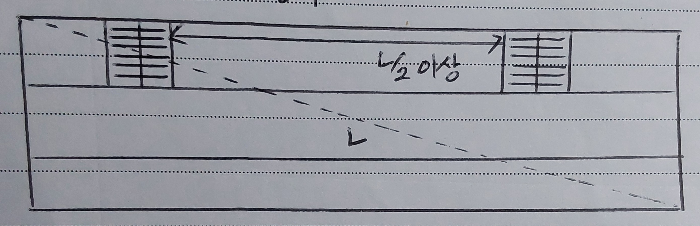 - 건축물 평면 최대 대각선 거리의 1/2 이상