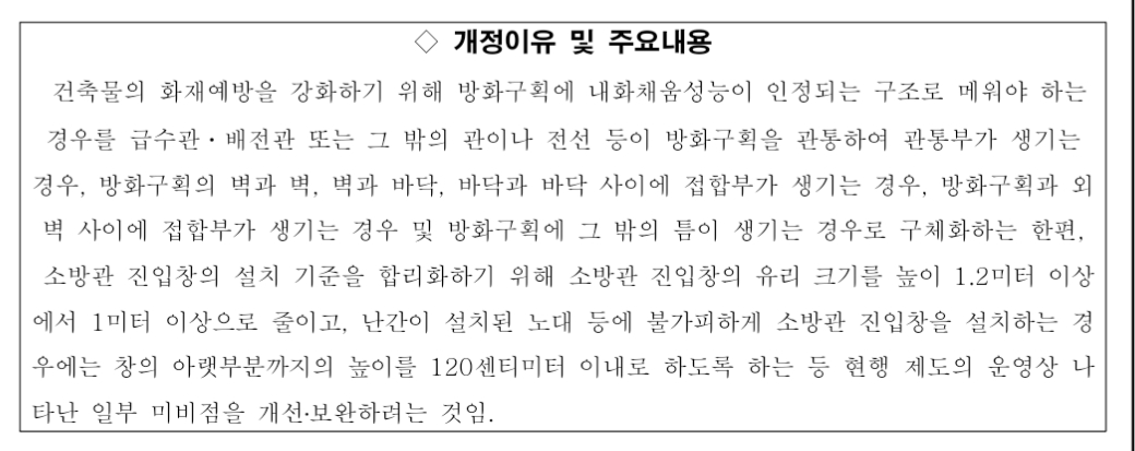 건축물방화구조규칙 (건피방) 개정 : 소방관진입창, 내화채움성능구조