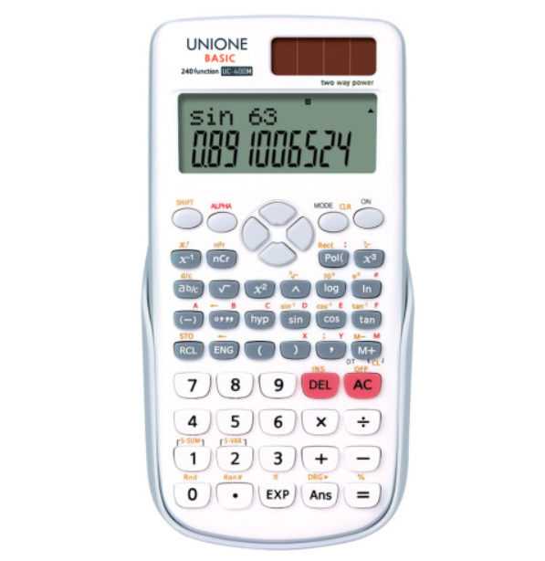 유니원사의 공학용 계산기의 경우 모두 태양광 충전이 가능하다는 점이 특징이다. 필자도 현재 예비용으로 시험때 가지고 다닌다.