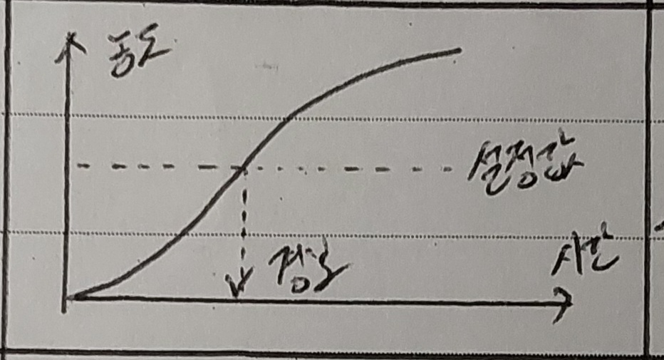 설정값 도달 후 농도 기울기에 따라 경보시간 결정 |