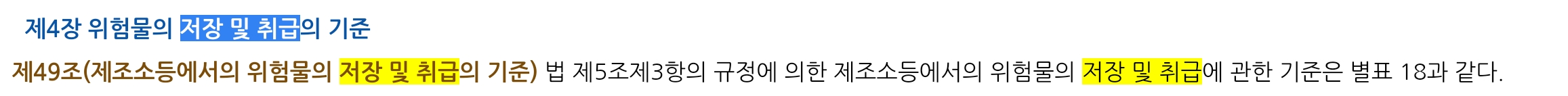 위험물안전관리법 시행규칙 제49조에 저장 및 취급에 대한 내용이 나와있고 이는 별표 18에 나와있다.