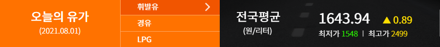 연료가격 기준은 2021.08.01 (출처: 한국석유공사 오피넷)