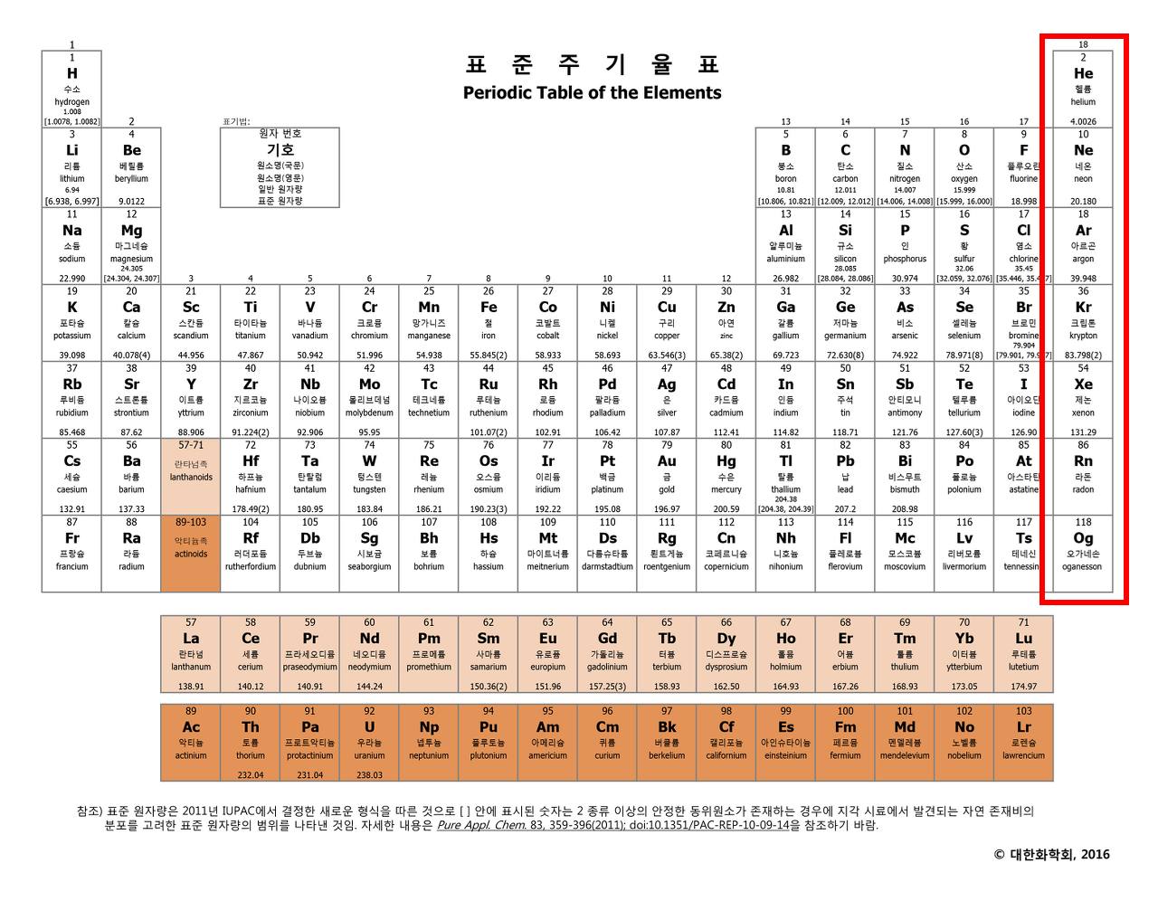 ▲ 불활성기체(주기율표) 출처: 대한화학회