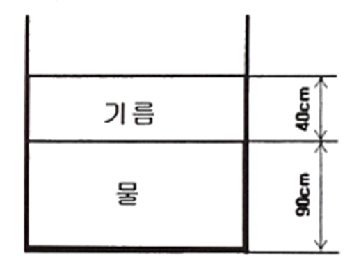 기름의 압력: 0.85 × 1000$kg/m^3$ × 0.4m × 9.81$m/s^2$ = 3335.4Pa = 3.335kPa