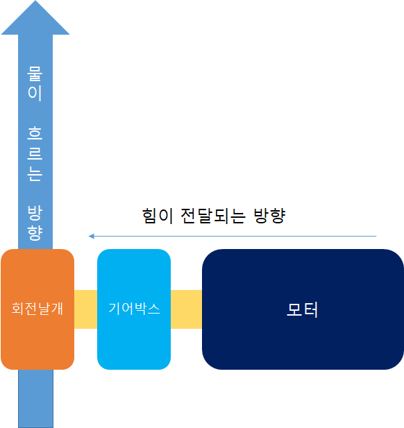여기서 중요한 점은 모터에서 발생한 힘이 모터 > 축 > 회전날개 > 유체(물)로 전달된다는 것이다. 이렇게 힘이 전달되는 과정에서 마찰, 진동으로 인해 손실이 발생하게 된다. 이것이 바로 모터동력, 축동력, 수동력으로 나뉘는 이유이다.