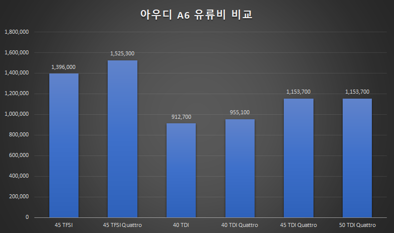 아우디(Audi)의 준대형 세단 A6 유류비를 비교해보자.