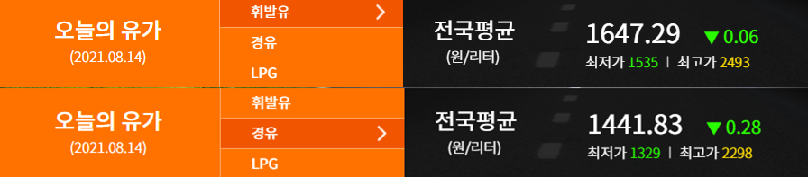 연료가격 기준은 2021.08.14 (출처: 한국석유공사 오피넷)