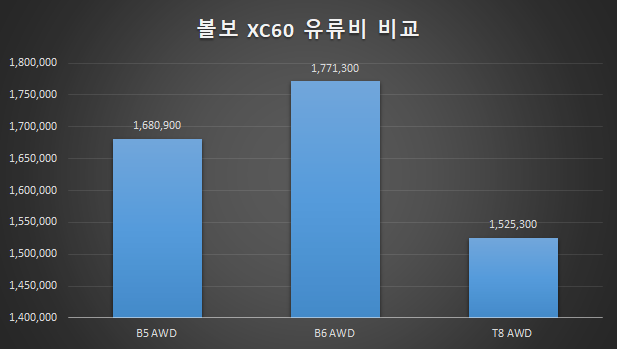볼보의 중형 SUV XC60의 유류비를 비교해보자.