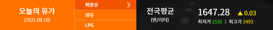 연료가격 기준은 2021.08.16 (출처: 한국석유공사 오피넷)