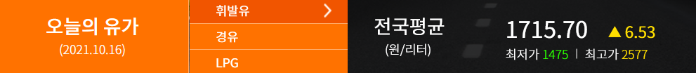 연료가격 기준은 2021.10.16 (출처: 한국석유공사 오피넷)