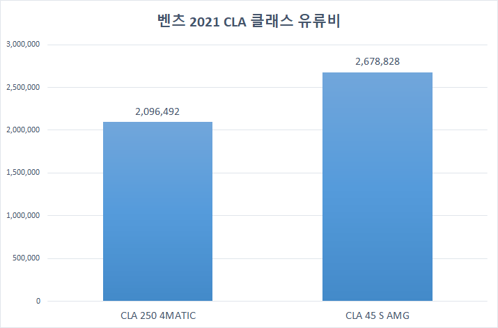 벤츠의 준중형 쿠페형 세단 CLA 클래스 유류비를 비교해보자.
