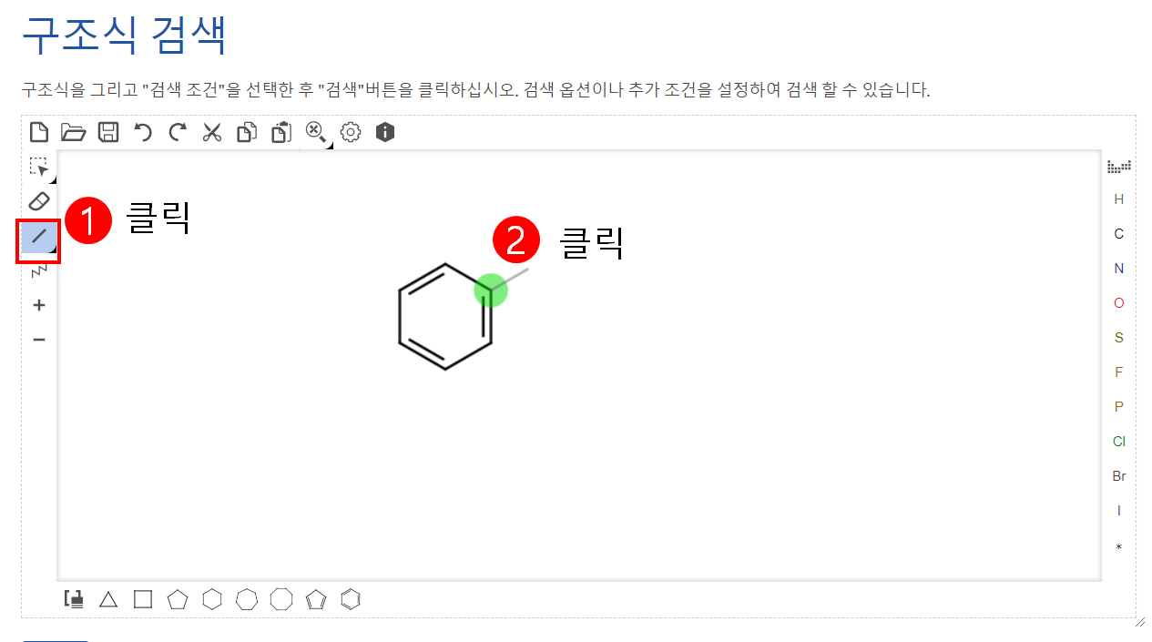 2-1. 하단의 벤젠고리를 클릭하여 그려넣는다.