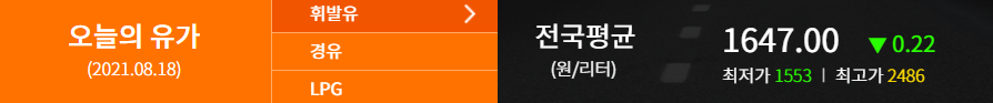 연료가격 기준은 2021.08.18 (출처: 한국석유공사 오피넷)