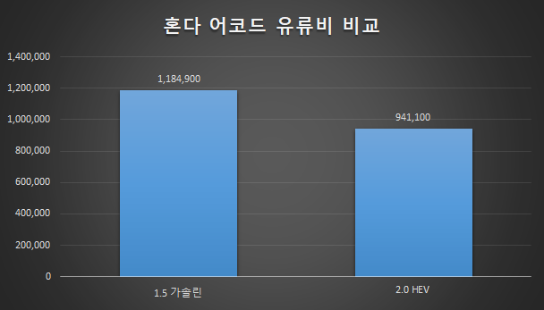 혼다의 중형 세단 어코드의 유류비를 비교해보자.