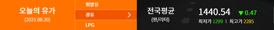 경유 가격 - 1440.54원/L (2021년 8월 20일 기준)